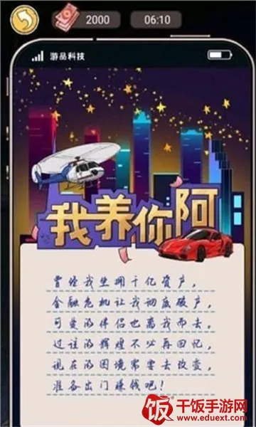 **我养你阿3.2.0内置菜单**核心特色:操作简单直观,轻松上手经营与养成。提供多样经营选项,如开餐馆、种作物等,还有多种养成路径,可依喜好策略选发展方向。以逆境角色为主题,展现成长逆袭故事,吸引情感投入。能通过合理分配资源时间、提升动物宠物能力、运用道具工具来协助经营。资金管理也很关键,要在投资、借贷、节约、理财等方面明智决策,最大化运用财富,体验丰富多样的游戏乐趣。