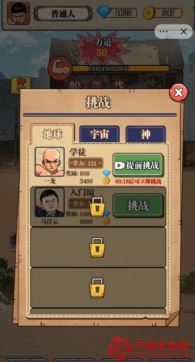 劈砖大师免广告版是放置经营类手机小游戏,玩家扮演劈砖高手开启修炼。可挂机获福利,通过点击屏幕劈砖积累经验、赚取金币升级,解锁道具、关卡和新玩法,还有丰富彩蛋与社交竞技。