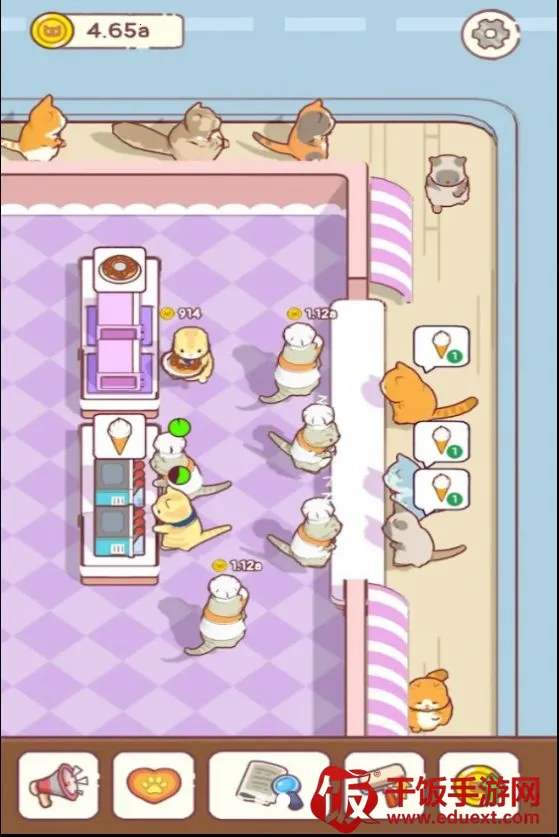 2、**猫咪元素丰富**:猫咪的装饰、员工、食材等都与猫咪有关,营造出浓郁的猫咪氛围。玩家将扮演猫咪餐厅老板,雇佣可爱的猫咪员工,为不同口味的猫咪提供个性化美食菜单。