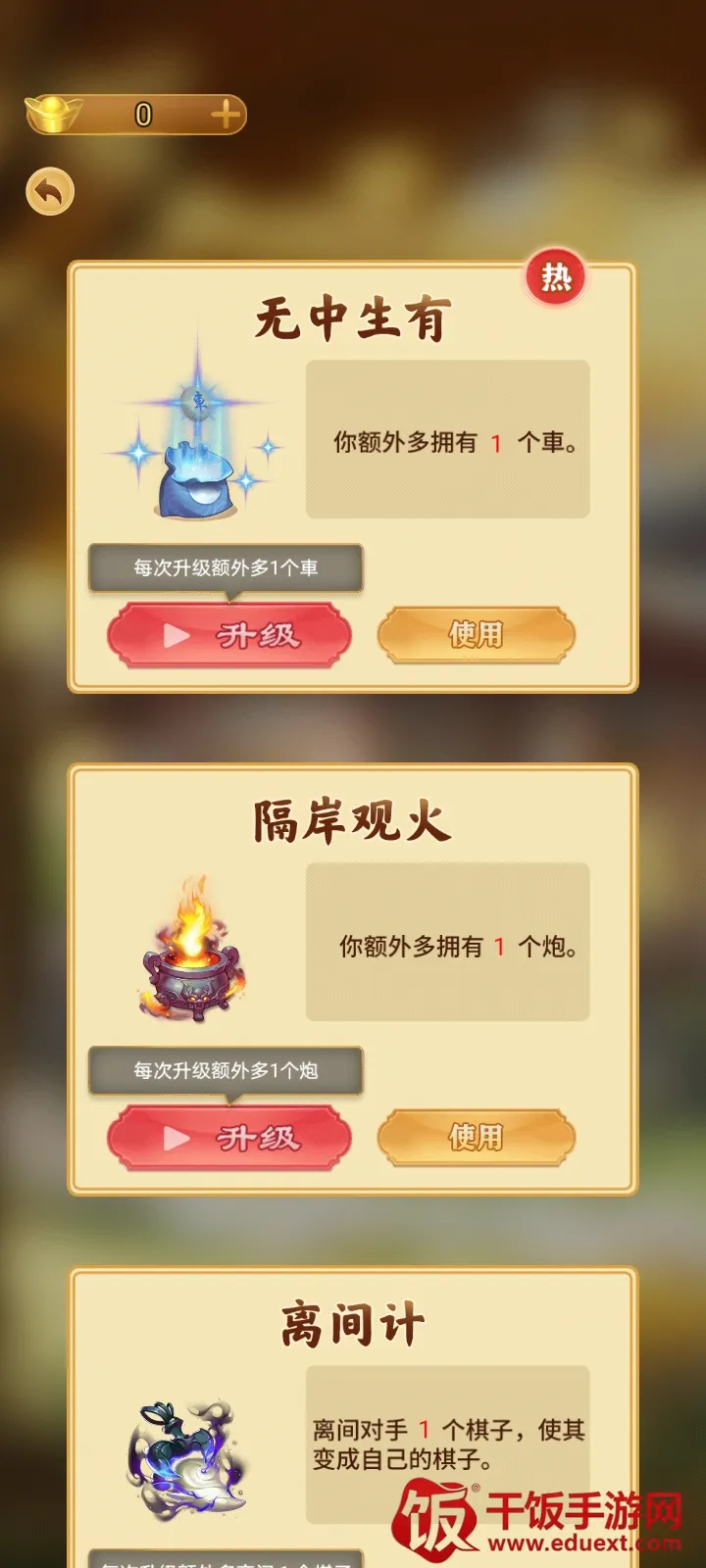 独特大招玩法:拥有丰富多样的大招,像偷梁换柱、皇恩浩荡、无中生有等,每个大招效果独特,为棋局增添了更多变数与惊喜,带来与众不同的对战体验。