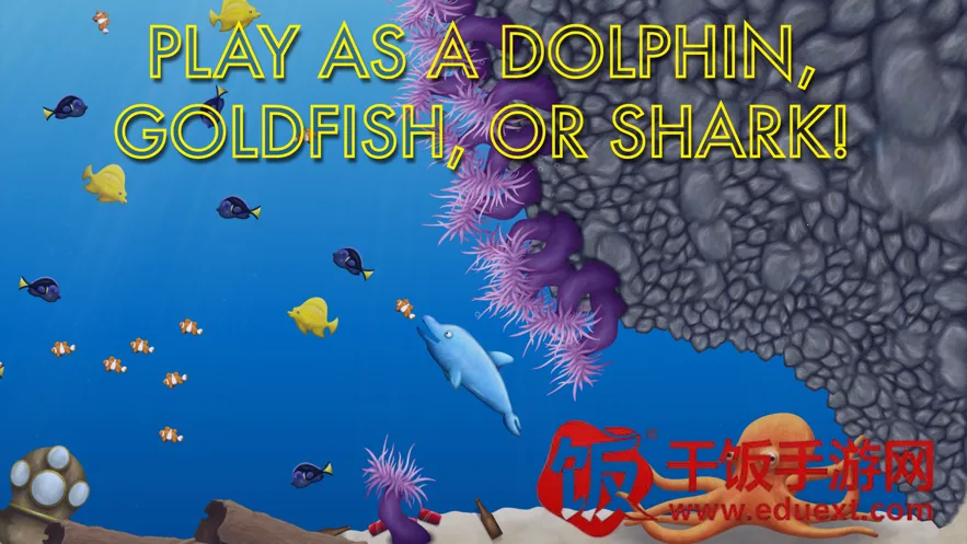 1. 丰富多样的游戏角色:可扮演金鱼、海豚、鲨鱼等多种动物,每个角色都有独特的成长路径和玩法体验。