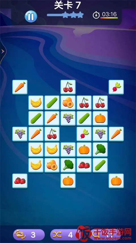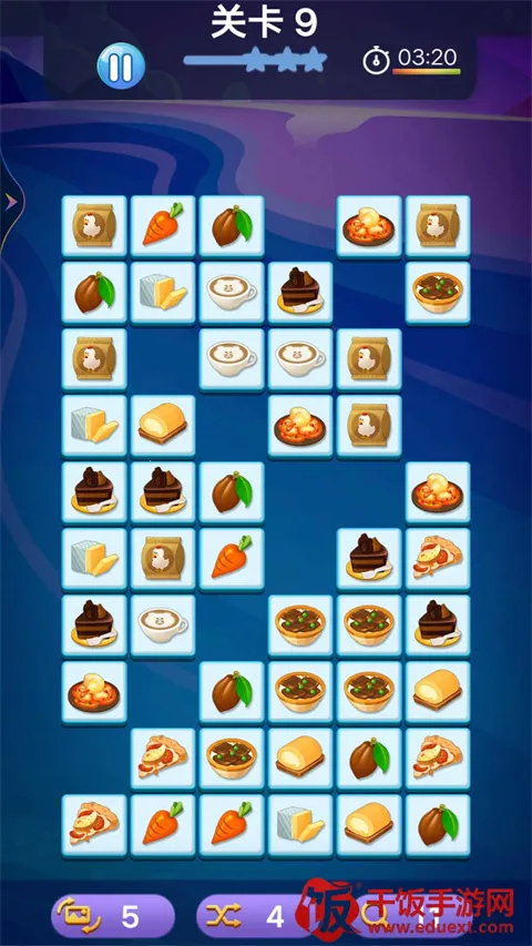 简单玩法:操作与连连看类似,把相同图案在不超两次转弯的路径下连线消除。