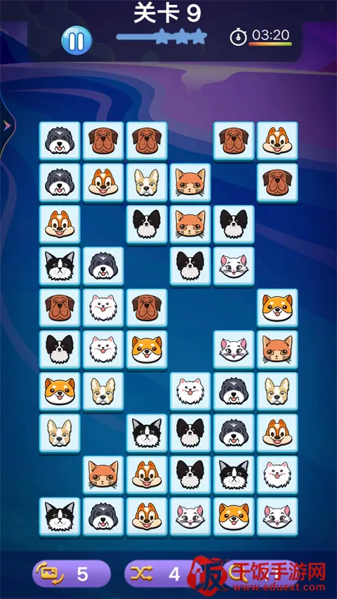 宠物连连看单机游戏玩法经典,画面可爱,操作简单,把相同图案在不超两次转弯下连线消除。关卡有倒计时,提供丰富道具助通关。角色图像高分辨率,有全球排行榜,无广告,自动保留进度,快来体验。