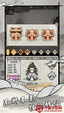 带着开挂系统去修仙免广告1.6是水墨画风的修仙游戏,有炼丹炼器等丰富玩法,开局送多种外挂,可自由分配属性点,挂机修炼,体验从炼气到化神的完整修真历程,还能参与势力纷争等,不肝不氪。