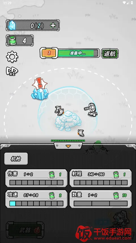 3. 动态升级机制:击杀敌人获得金币,可购买或升级3种基础武器。升级路径清晰,从初级坦克到地空导弹,资源分配需权衡即时战力与后期强度,考验玩家长期规划能力。