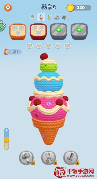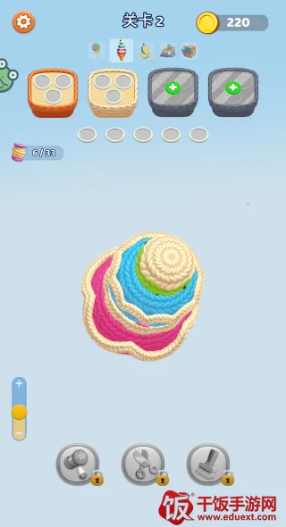 2. 策略消除:以收纳盒颜色为线索,玩家要仔细观察针织物品抽取毛线,优先处理颜色密集区域,避免堆积,合理规划操作顺序。