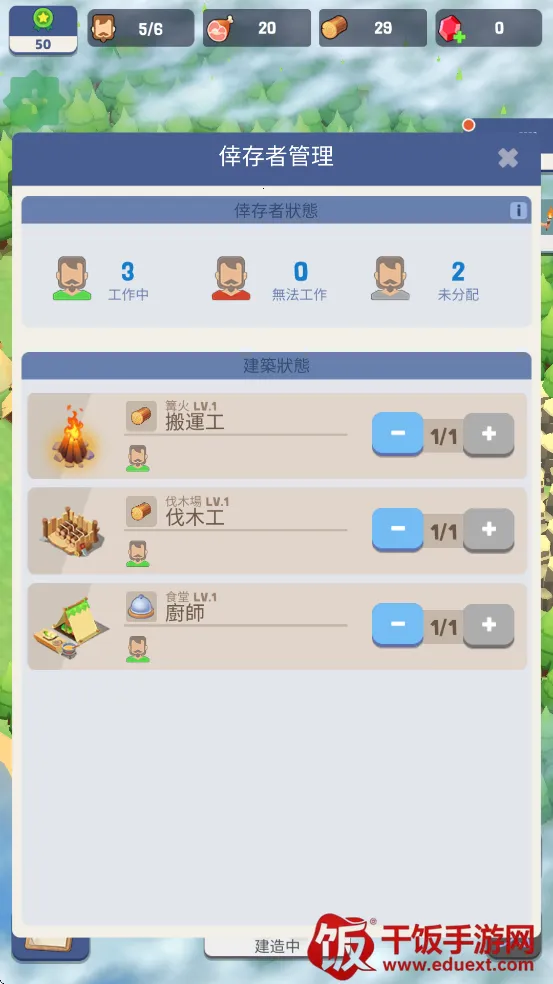 5.点击右边设置下方的人物标志可以查看目前幸存者的分配情况,按照情况进行调整任务