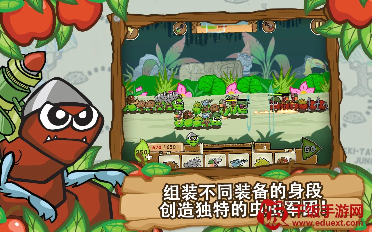 1. 丰富多样的装备:可指挥毛毛虫军团用喷火器、粘稠的蜂蜜地雷、机械枪等多种装备武装,还有大炮、火箭发射及坦克虫等重型武装,让战斗更具策略性。