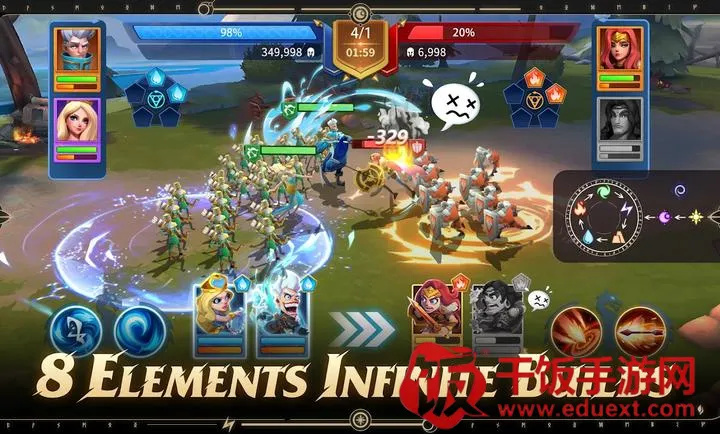 1. 八大元素之力任你驾驭,融合元素运用战术阵型,超越传统战争,用智慧主宰战场。