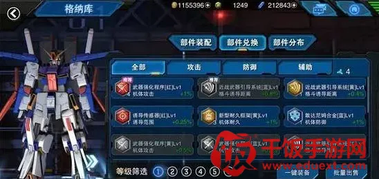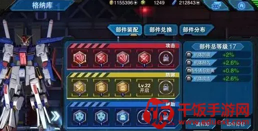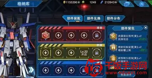 2、根据各类部件的能力,均能对机体属性各项进行一定比例的提高,诸如格斗的诱导距离、喷射槽上限、机体耐久与防御的加成等等。