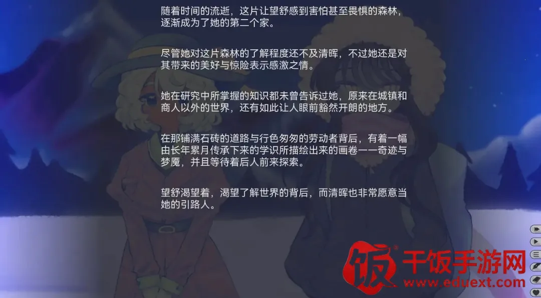 《我们的冬日物语》是一款奇幻百合视觉小说。它讲述了少女望舒在雪林迷路,清辉出手相助,二人携手冒险的故事。游戏流程约3-4小时,剧本字数30000词左右。有定制立绘CG、背景素材,原声带含音效。技术支持方面,按V键可启用配音功能,有多层次雪景,兼容键盘与手柄操作。由Crimfinity等专业人员制作。在这里,你能体验一段独特的冒险之旅,跟随两位少女的脚步,感受她们在危机四伏的冬日雪林中的挣扎与成长,探索她们内心深藏的宝藏,解开彼此身世的秘辛。满足你对奇幻故事和精彩剧情的追求,让你沉浸在这个别样的世界中,享受一场与众不同的视听盛宴。