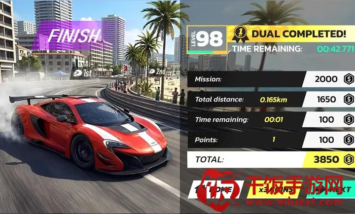 2. 多样游戏模式:生涯模式可完成任务解锁新车,双人模式能与玩家交锋,无尽模式挑战行驶距离,挑战模式考验反应速度,满足不同玩家需求。