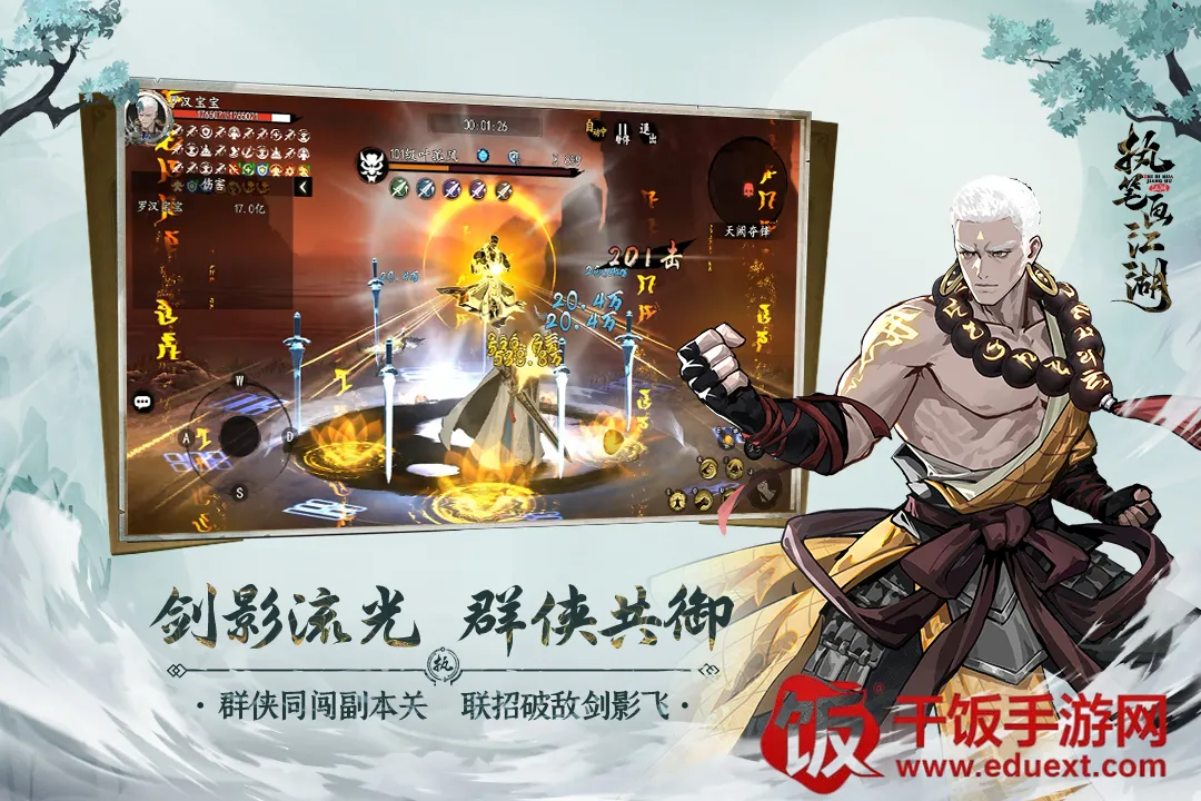 执笔画江湖是水墨风武侠冒险手游,玩家扮演侠客,有独特技能玩法,可升级解锁。横屏战斗,多种PVE、PVP玩法,还有原创剧情、多样侠士角色。能创建5名侠客,开启专属江湖路,体验精彩武侠世界。