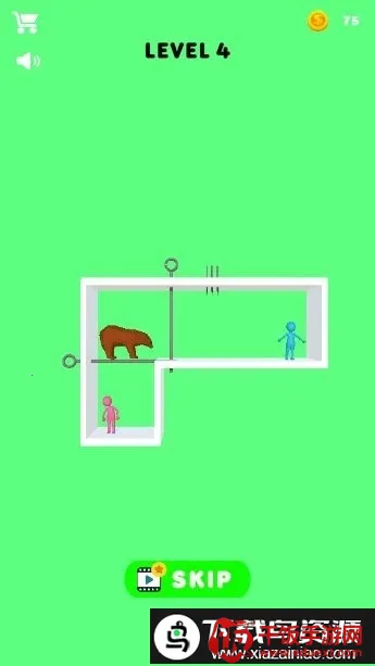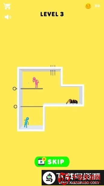绳索益智救援是一款备受欢迎的手机游戏。它以独特的拉针解谜玩法吸引玩家,大量精心设计的关卡极具挑战性。玩家需巧妙拔出插销,引导红蓝小人会合才能过关,一步失误就可能失败,十分考验观察力与逻辑思维。