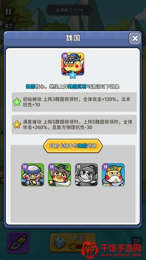 3、在战斗中,比如刷新的武将没有曹操,那就优先曹魏武将,哪怕核心武将孙权的属性更好。
