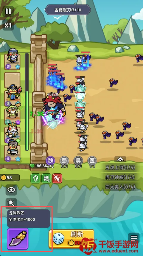 3、丰富羁绊效果:游戏内设丰富的羁绊效果,例如集齐刘备麾下的关赵张马黄即可激活五虎上将羁绊,大幅提升队伍战斗力,让战斗更具策略性和趣味性。
