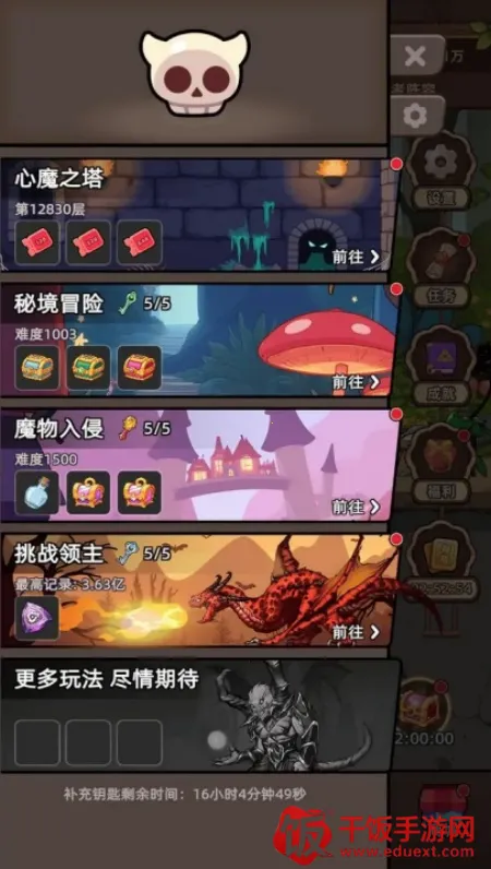 4. 玩法丰富多:游戏奖励丰富,有每日签到、在线时长奖励、任务成就、免费转盘等福利活动,可免费获取大量资源。目标体系明确,通过阶段任务与成就引导尝试不同构筑方向,推进主线时有持续成就感。丰富多样的游戏模式,包括主线闯关、试炼爬塔、神秘副本、刺激boss等,可自由切换选择,带来不一样的游戏乐趣。