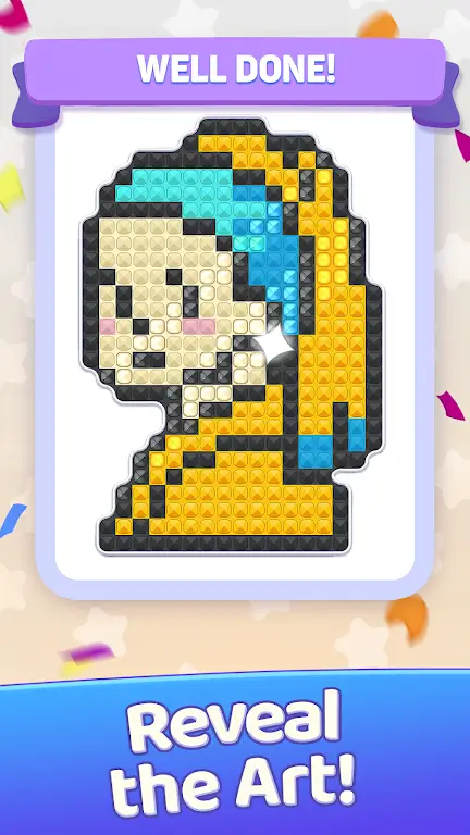 1. 丰富艺术收藏:提供数百幅像素艺术作品,涵盖自然风光、可爱角色等,不断更新,每次分类都是创作,带来无限可能。