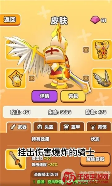 3、解压放松乐趣足:超炫酷冒险玩法,快速战斗通关,掉落优质武器,搭配装备强化属性,每天获取大量战利品,享受优质装备,挂机玩法简单轻松,离线也能有收益,带来最爽快解压体验。