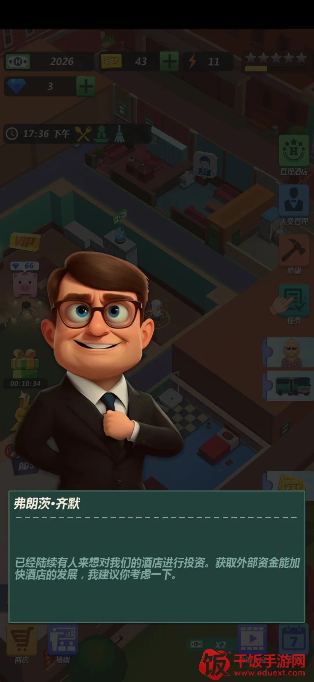 2、全面管理体验:负责酒店业务的方方面面,从建造设计到服务客人,掌控帝国成功。