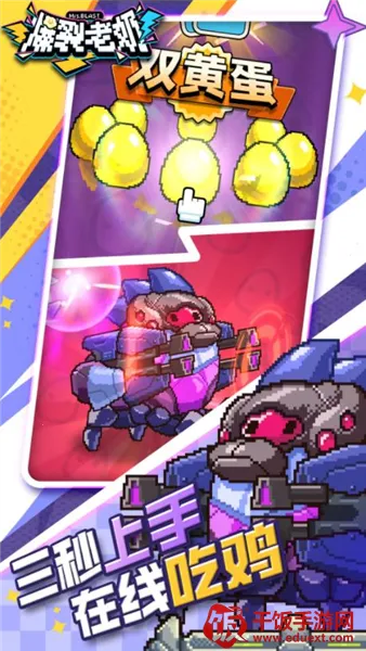 3. 丰富玩法:操作简单爽快,通过完成任务、击败敌人升级,解锁更多武器与技能,还能参与抽卡与合成玩法,获得更强蛋兵。