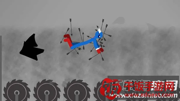 3、画面有特色:以黑白灰为主色调,呈现火柴人被蹂躏的可怜景象,独特的画风给玩家别样视觉感受,区别于其他色彩鲜艳的游戏,更具个性。