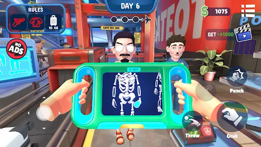 这是一款模拟机场安检管理的游戏,目标是管理安检点。旅客排队接受检查,要判断能否登机或需拘留,谨防走私者偷运违禁品,借助金属探测器和行李扫描仪检查行李,保障机场安全。