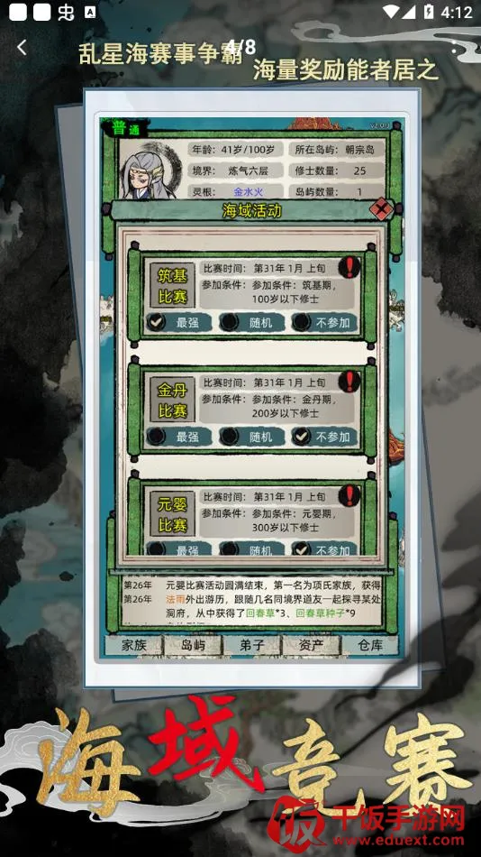 修仙家族模拟器是一款以文字为核心玩法的休闲模拟养成游戏。玩家扮演家族老祖,在海域占领修仙小岛,带领家族发展壮大。