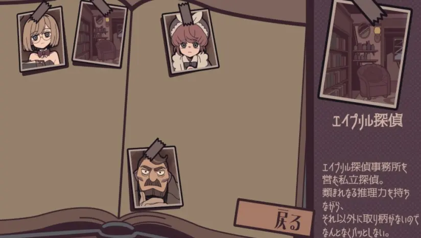 想知道如何在艾普里尔侦探事务所里成功破案吗?这款主打直觉判断的轻量推理游戏就能满足你。你将扮演新手侦探艾普里尔,接手多起相互关联的案件,面对九名各怀心事的嫌疑人。游戏玩法超简洁,没有现场勘查和交叉质证环节,只需通过询问嫌疑人,在判定是否为犯人两种选择中推进流程。凭借对话细节与第一印象做出判断,就能逐步揭开真相。这里有十二种不同结局,单次选择无法拼凑完整真相,需多次重复游玩收集线索,解锁碎片化剧情碎片,挖掘嫌疑人背后隐藏关系。全结局通关约耗时3 - 4小时,其精致画风搭配充满博弈感的推理过程,能给你带来独特的轻推理体验,帮你轻松解决推理难题,享受推理乐趣,快来试试吧!