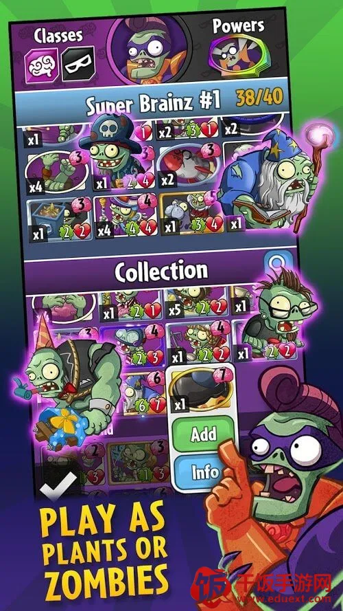 游戏中,玩家可自由化身20位特色鲜明的战术指挥官,每位领袖均配备专属觉醒技与战略定位。通过收集或打造上百张卡牌来组建队伍,丰富技能,尝试各种强大组合。玩家还能在激烈的实时比赛中与好友和其他玩家一较高下,无论是休闲多人对战还是排位赛,都能体验到不同的策略乐趣。游戏还拥有丰富的剧情模式、社交系统和赛季轮替玩法,不断为玩家带来新的挑战和惊喜。如果你喜欢策略卡牌游戏,那么《植物大战僵尸英雄》绝对值得一试!