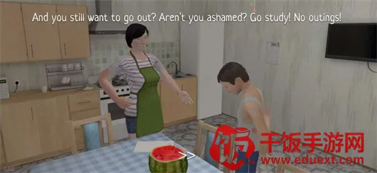 进入游戏,你会出现在自己房间,通过左侧摇杆控制移动,右侧按钮实现起立和下蹲。点击物品就能交互,比如打开柜子。要小心别被爸妈抓住,不然就会被罚干家务活或者做运动。