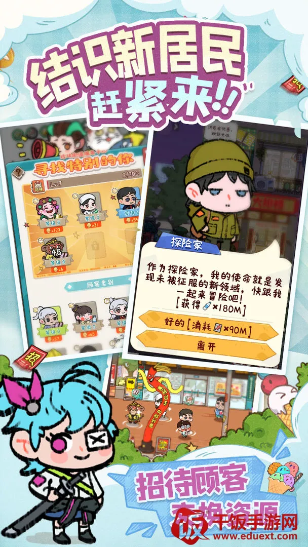 游戏画风精致卡通,视觉效果超棒,还有各种美食等你解锁,丰富游戏体验。国风背景音乐,更是营造出惬意氛围。玩法简单易上手,点击就能推进游戏。能解锁各种店铺设备,增加游戏乐趣,还能招募个性员工提高经营效率。另外,还有独特的手账式烹饪玩法。在游戏里,你能建造大排档、棋牌室等特色店铺,遇见不同顾客,倾听他们的故事,一起让商业街变得更繁华。快来下载,开启你的美食经营之旅吧!
