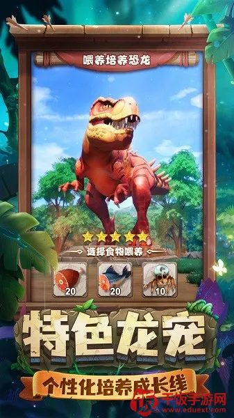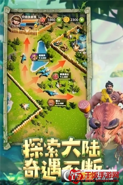 2. 创新部落建设:玩家作为部落首领,带领族人从零开始建设家园,在侏罗纪世界中驯养恐龙军团抵御外敌,一步步积累,称霸蛮荒纪元。