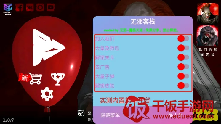 游戏中,你要扮演勇敢的探险者,在各种恐怖场景找线索、解谜题,还要和敌人斗智斗勇。而它特别加入的内置菜单,提供了无限子弹功能,这可太实用啦!有了无限子弹,面对恐怖敌人时你就能更加从容,尽情享受射击快感,不用再担心子弹不够而陷入危险。高质量的3D画面和逼真音效,能给你带来沉浸式的恐怖体验。不管你是喜欢解谜还是射击玩法,都能在这儿找到乐趣。准备好进入这个阴森的游乐园了吗?快来体验一番,看看你能不能揭开死亡公园的秘密,成功逃脱吧!