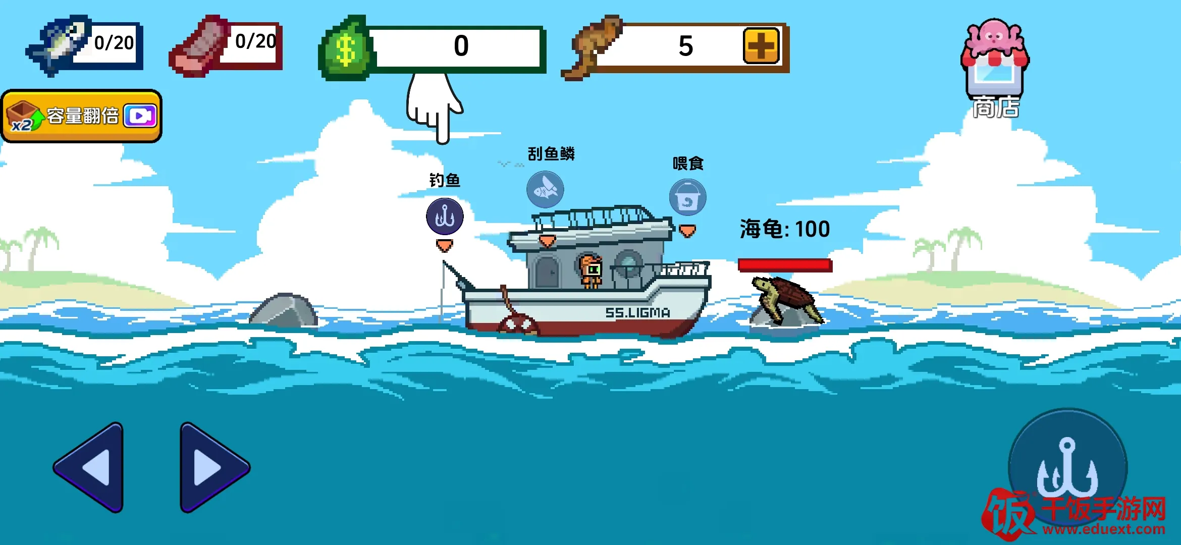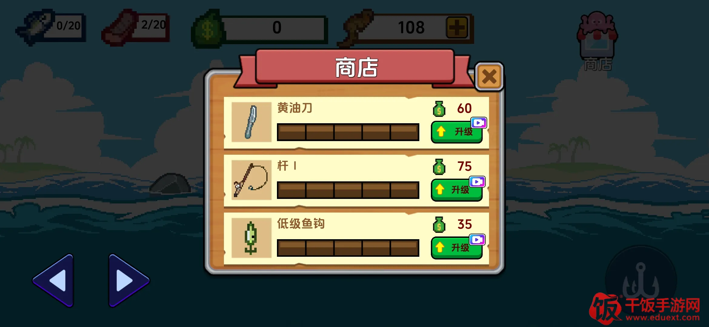 4. 可不断升级装备和渔具,提升捕获效率与稀有鱼获取概率,还能通过升级道具或鱼钩,加快刮鱼鳞速度,钓到大鱼,解锁更多玩法。