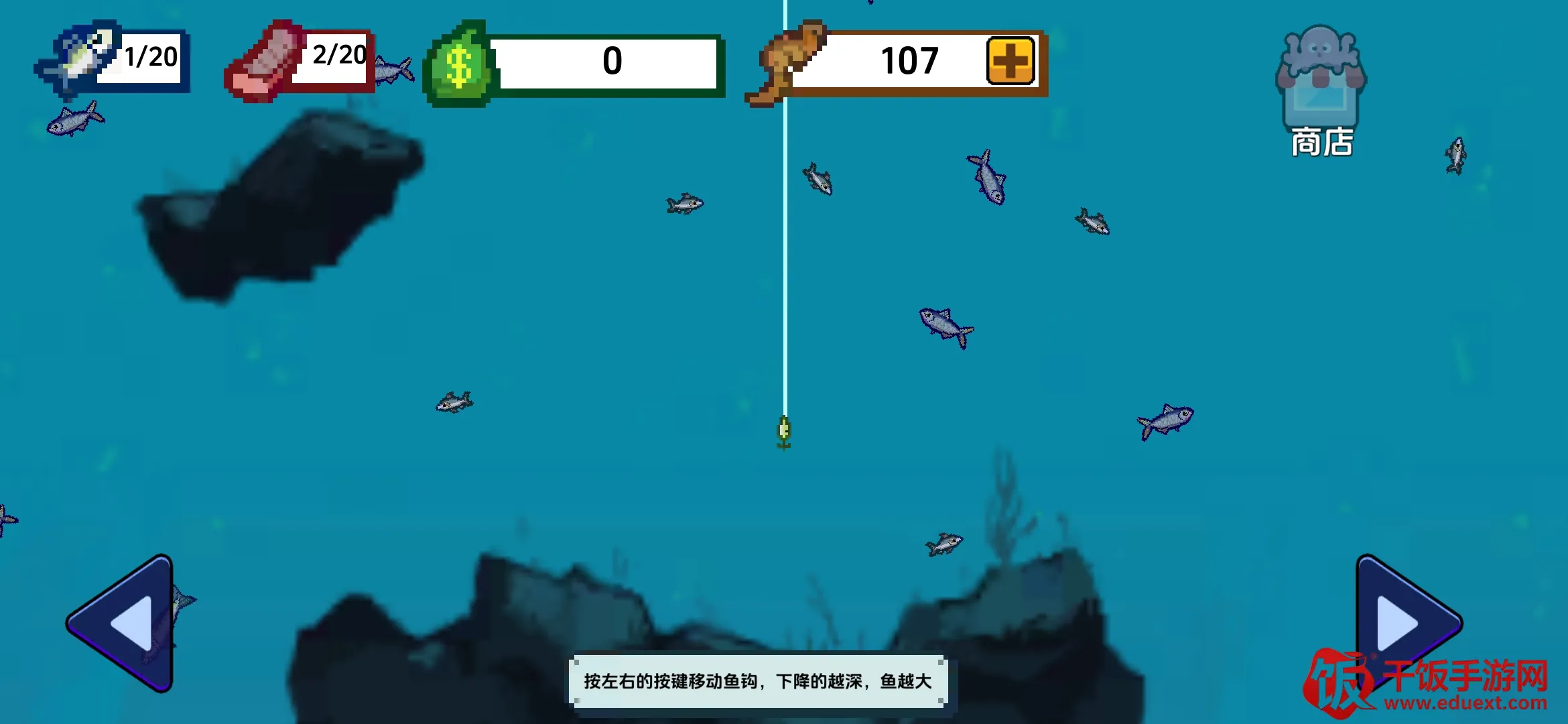 2. 操作简单易上手,拖动和点击即可完成钓鱼和清理操作,非常适合碎片化时间娱乐,让玩家轻松享受游戏乐趣。