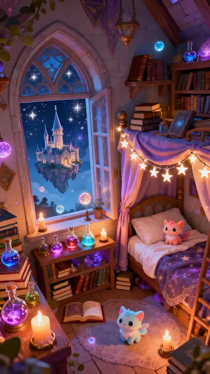 3. **唯美画风与沉浸氛围**:采用柔和梦幻美术风格,画面设计细腻,色彩温暖。魔法学院建筑、教室及魔法物品极具艺术感,搭配轻松音乐和自然音效,每次合成与任务完成后,玩家都能沉浸在魔法美妙氛围中,感受无限魅力。