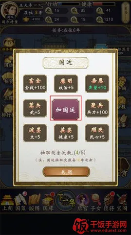 7、有五次免费抽取国运的机会,次数用完了需要每十年才能刷新。