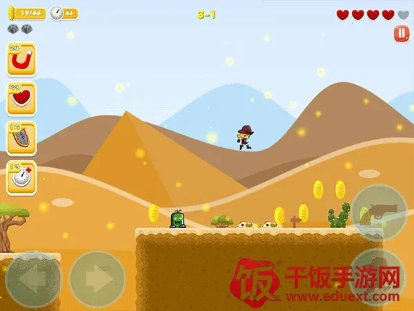 3. 支持几十个成就及多种道具,助力玩家更顺利通关。还有牛仔风格的平台跳跃玩法,搭配恰到好处的背景音乐,带来全新冒险体验。