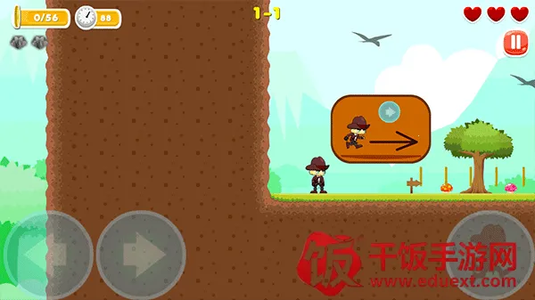 3、在悬空障碍物面前则按住右箭头同时,连续按两次按键来操控角色跳跃过去
