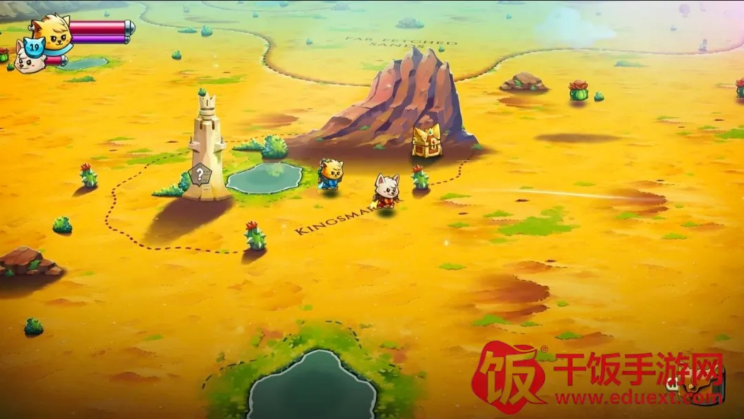 2、开放世界广阔:场景横跨猫族王国和狼族帝国,还有更多未知区域,玩家可自由探索,每个地图都藏着秘密任务与挑战。