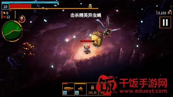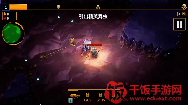 1、采用反向弹幕射击机制,融合采矿元素消灭虫族,升级装备深入危机四伏的洞穴。