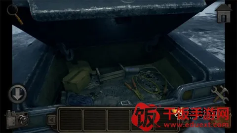 1、在最终设施入口处,首先打开汽车后备箱,获取汽车跳线,进一步进入设施内部,随后点击右侧的电箱以取得管钳,连接跳线以激活电源。