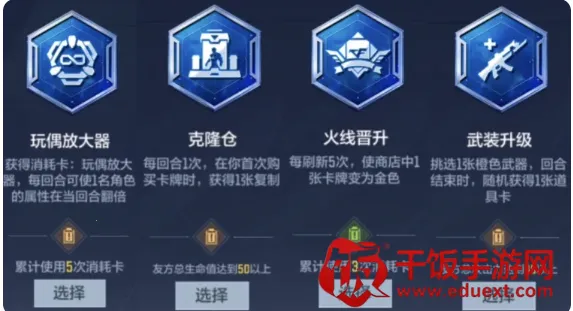 2、条件苛刻的升级效果不建议选择,可选择玩偶放大器、克隆仓、火线晋级、武装升级等简单通用的效果。