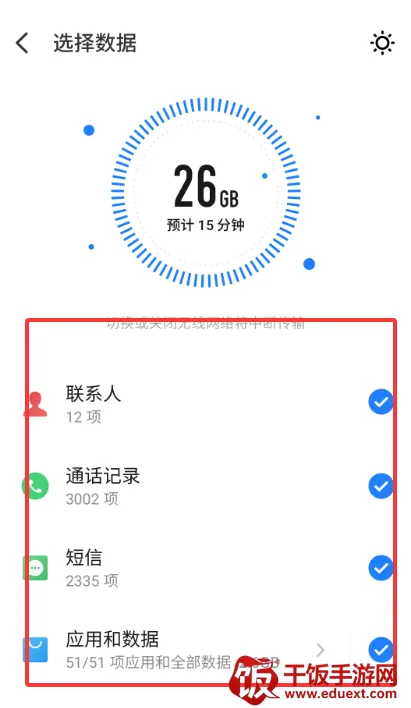 3、选择要传输的数据