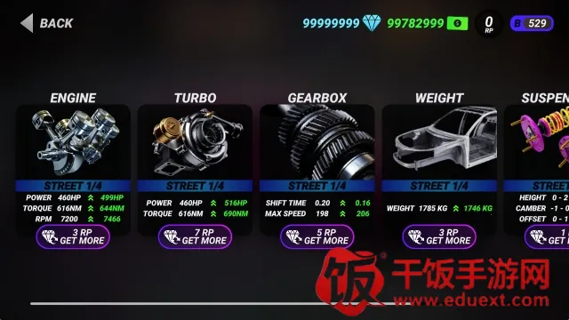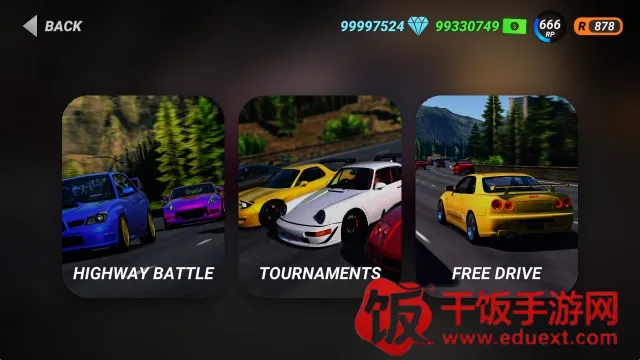 4、丰厚奖励获取:比赛中不断收集赏金,利用改装系统提高车辆属性,完成挑战性任务可获丰厚奖励。