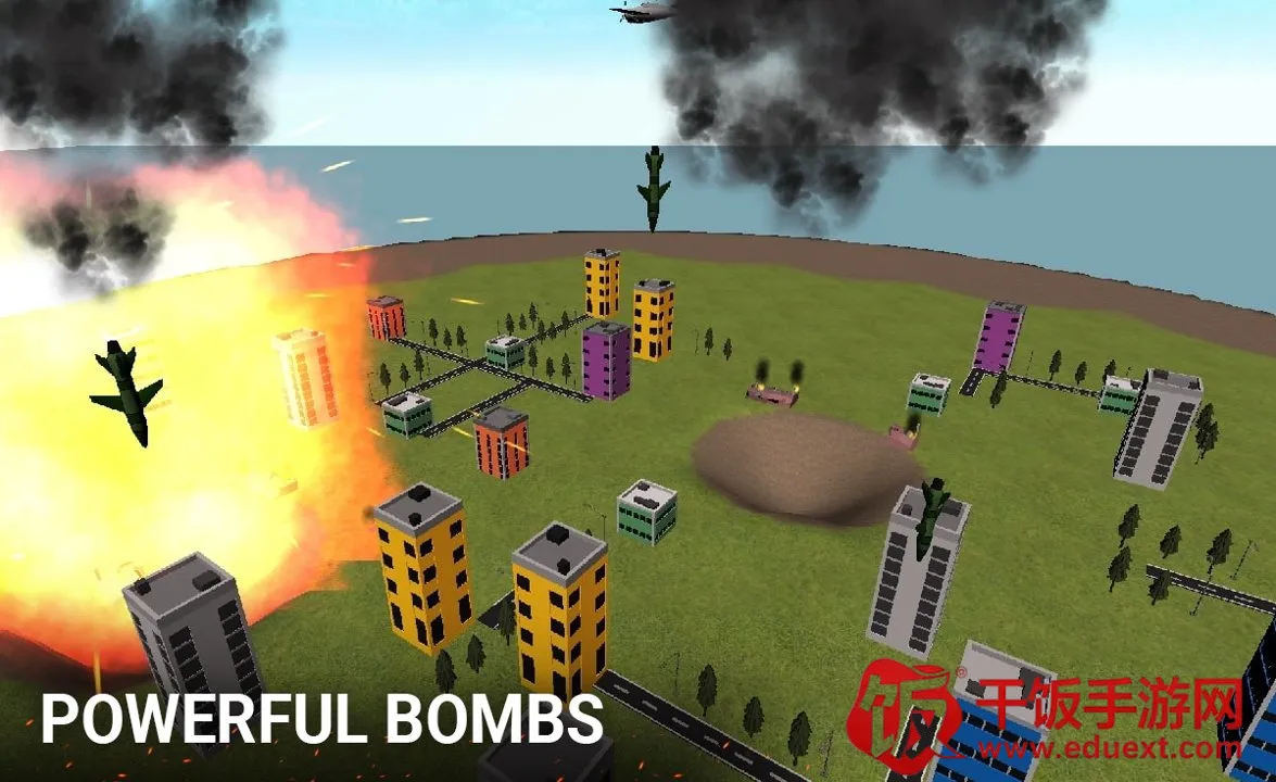 核弹模拟器核心特色丰富多样。拥有超过10种不同类型的炸弹、火箭和大规模杀伤性武器供玩家体验。改进的3D画面带来炫酷特效,每次游戏都会随机生成全新城市建筑,告别重复。建筑具备完全可破坏性,独特的损坏和可破坏系统。能体验史上威力最强的传奇沙皇炸弹,还有流星雨和太空打击首次推出。在这里,玩家可自由选择核弹类型与投放地点,观察不同环境下的爆炸效果,感受核武器的巨大威力与责任,完成从新手到指挥官的华丽转身,解锁更多模式和关卡。