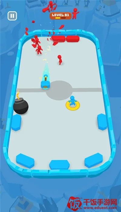 这是一款魔性十足的休闲趣味游戏。操作简便,仅需拖动屏幕就能控制小人移动与瞄准射击方向。玩法充满挑战,玩家要突破敌方重重防御击破方块,还要防御敌方射击。物理弹射玩法超刺激,每次弹射都需自己动手,按住角色往后拉、瞄准、调整力度,拉轻飞不到,拉狠易出界,要在一次次尝试中找最佳角度和力度。战场上散落各种道具,如加速、改变重力方向的,还有能把炸弹借弹射力送入敌营的,打击感超爽。街机撞击玩法重现,靠撞击取胜,利用地形和墙壁反弹,从意想不到角度撞向对手,让人上瘾。它还是单手掌控全局的手指游戏,适合在各种无聊时刻玩,跟着轻快魔性的音乐,手指点击节奏自动跟上,玩得根本停不下来。