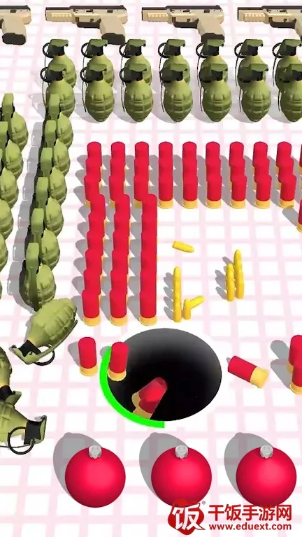 吞噬武器io游戏中,玩家要在时钟倒计时内,如吸尘器般在堆满武器子弹的大厅吞噬它们,选黑洞皮肤,吞光可获更强力量战巨型boss,收集武器打败敌人,成为黑洞英雄攻击者。