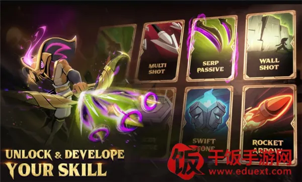 3. 多元英雄与技能搭配:提供9位风格迥异的弓箭手英雄,拥有专属技能树与战斗节奏,可从超20种解锁技能中自由搭配,创造丰富战术连招。